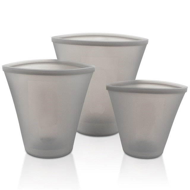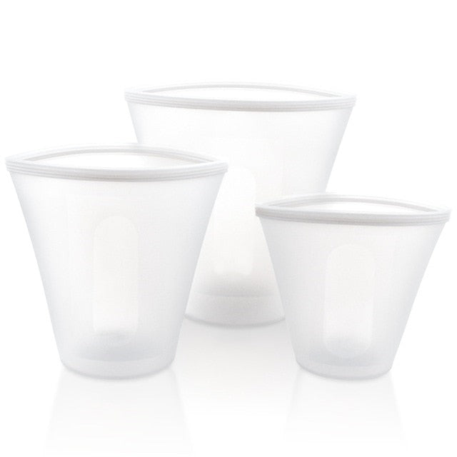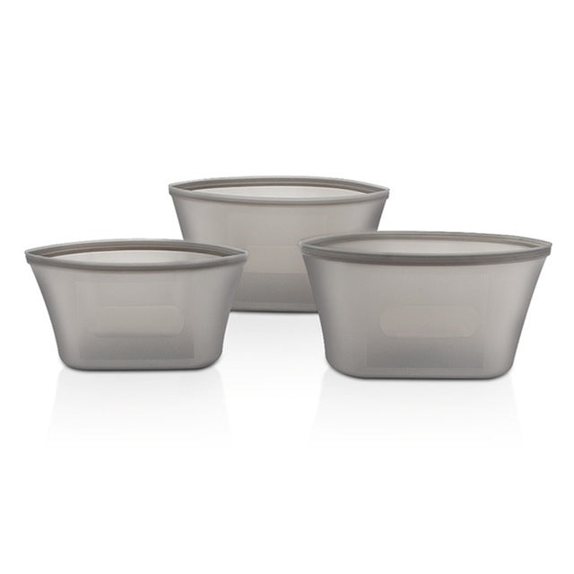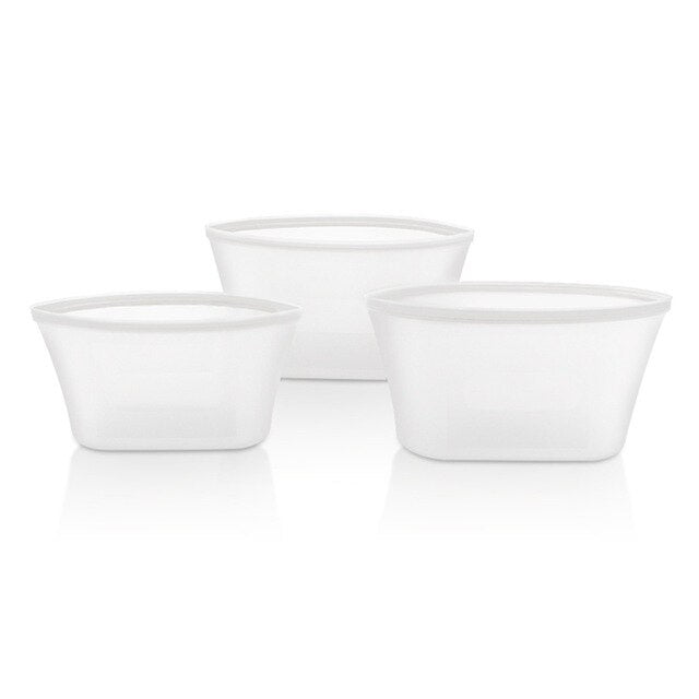 Our newest addition to the family- the silicone bag set! Silicone bags are perfect for creating burrito bowls, pantry organization, bringing soup to the office, and more! Our silicone bags are odorless, leak-proof, and keep your food fresher, longer. Use the silicone bags in the kitchen, or be creative! Great for storing messy items like tubes of paint, foundation, and more. Available in white, grey, and blue.